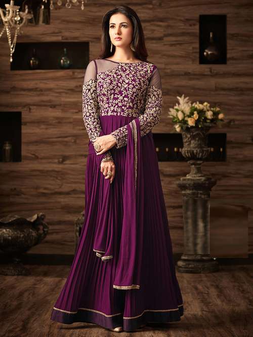 - » embroidered semi-stitched anarkali suit