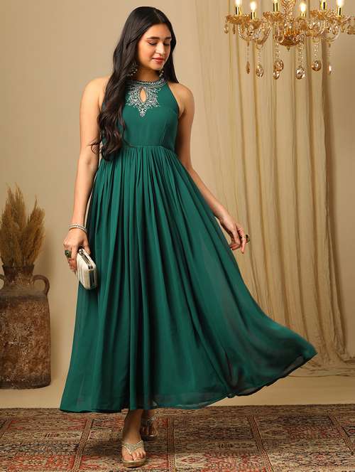 - LimeRoad brings to you the classic range of georgette ethnic dresses handcrafted with embroidered art to give you an effortless traditional look.