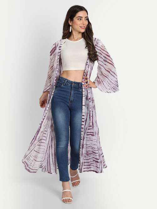 purple tie & dyed bell sleeves long shrug  - 20118921 - Very Small Image - 1