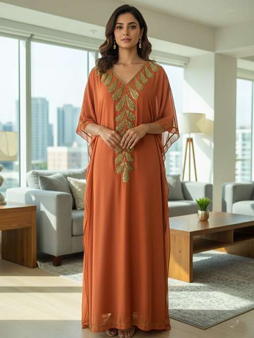 - Look chic wearing the fashionable kaftans made of flowy georgette materials, along with a wide range of FREESIZE size options to select from.