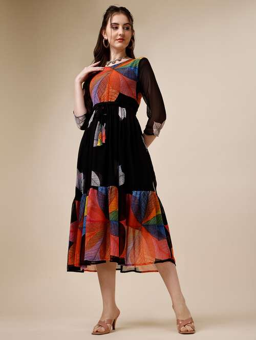- Dress up in a soothing pattern and don this dress made of georgette material.