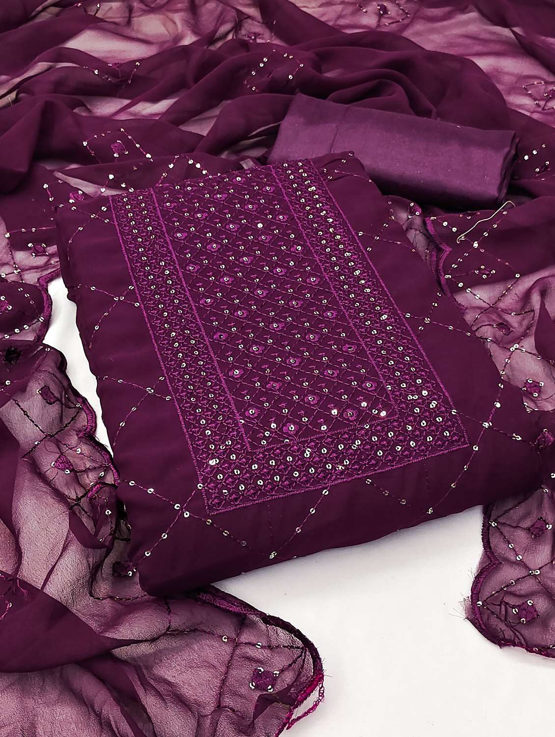 women solid with work embroidered unstitched suit set - 21975395 - Very Small Image - 1