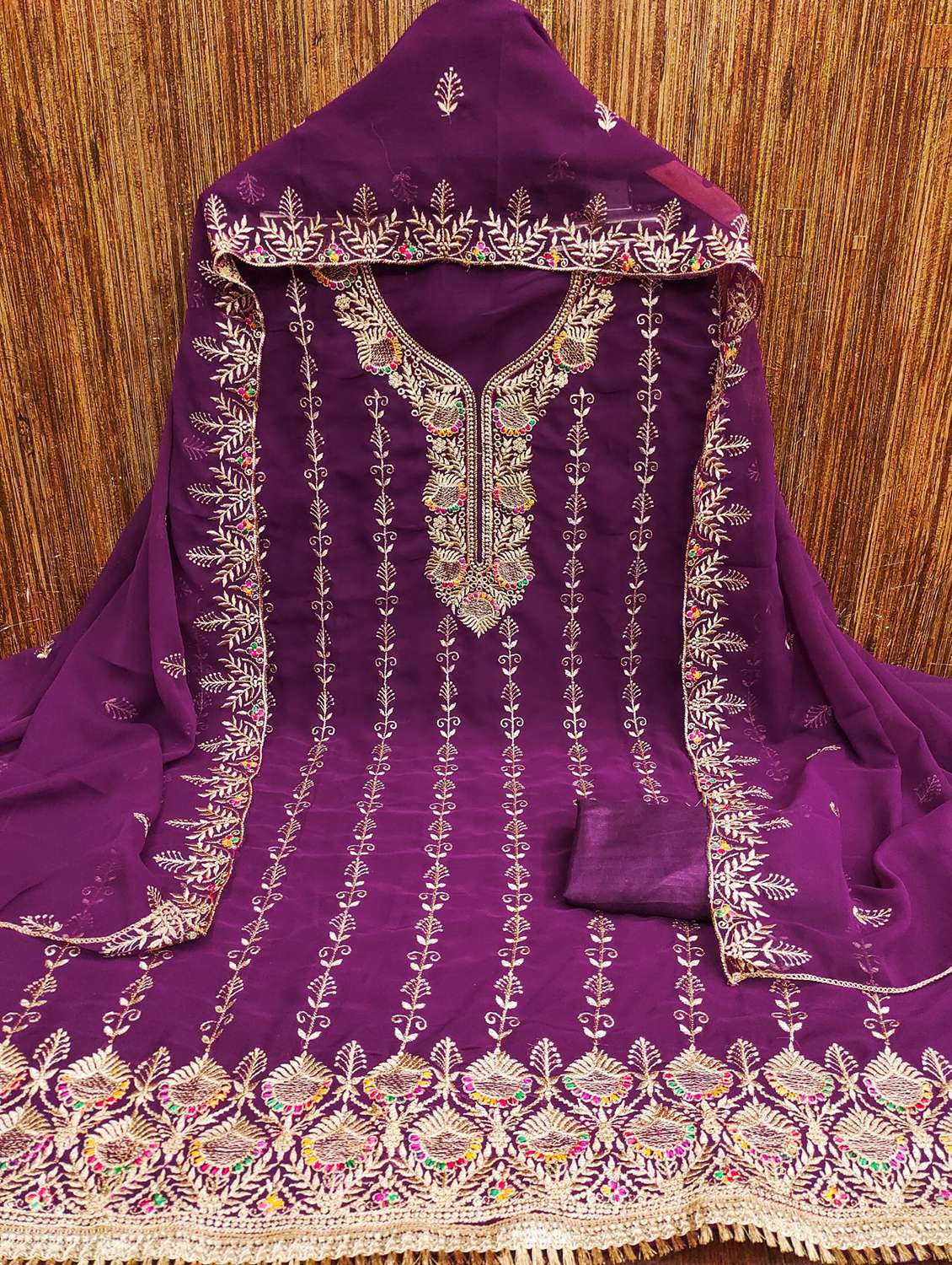 women solid with work embroidered unstitched suit set - 21976685 - Very Small Image - 1
