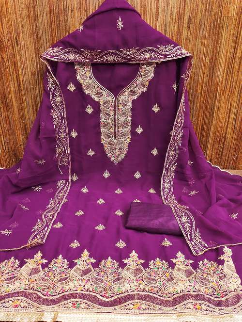 - Look ultra gorgeous in unstitched suits from Leeli Peeri Designer and grab these beautiful suits in purple colour.