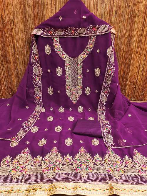 - Look ultra gorgeous in unstitched suits from Leeli Peeri Designer and grab these beautiful suits in purple colour.