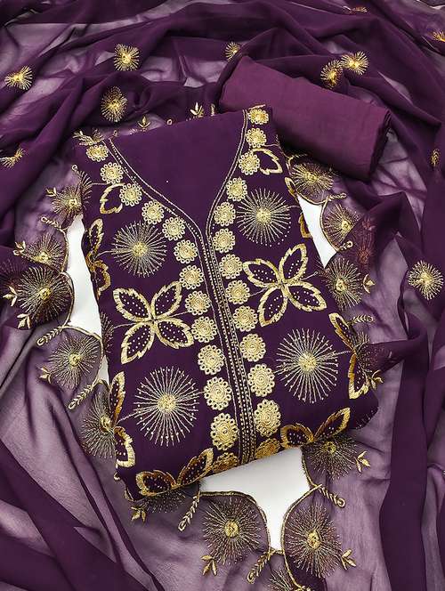 • Look ultra gorgeous in unstitched suits from Lilots and grab these beautiful suits in purple colour.