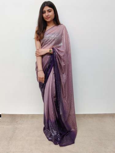 purple party wear sequence saree