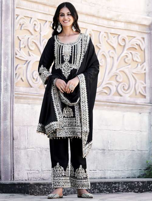 - Browse through the latest range of ethnic sets for women with tailored sleeve designs with embroidered works.