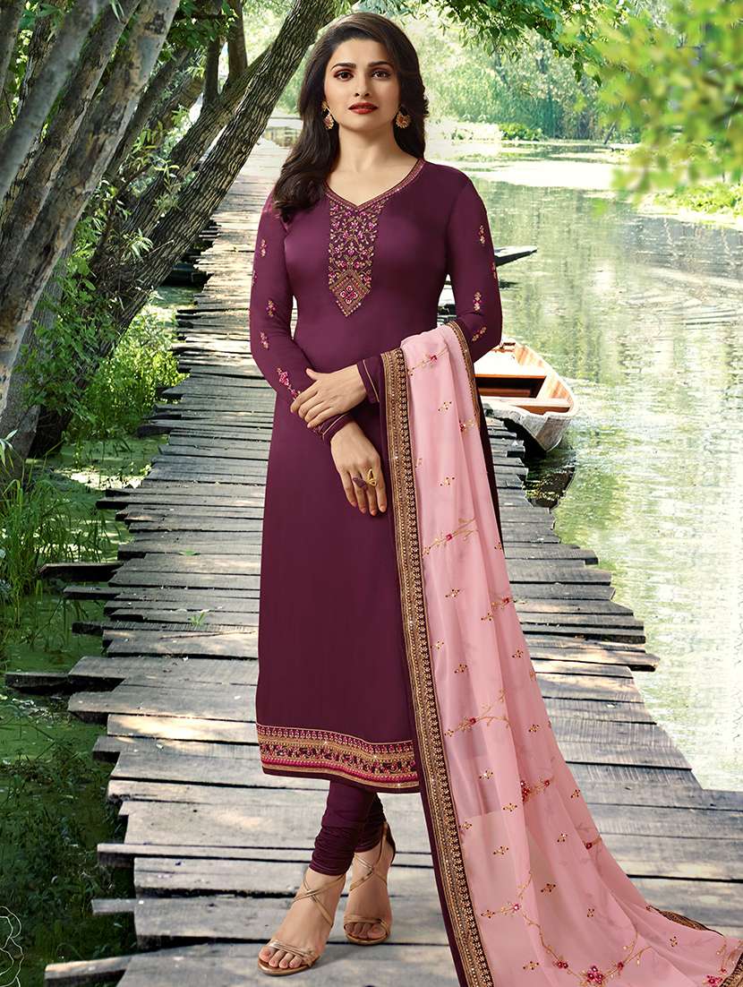 - » purple georgette semistitched suit