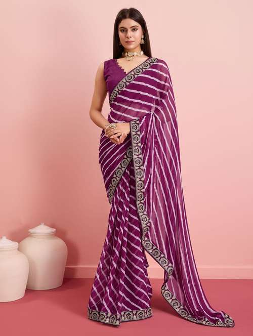women leheriya bordered saree with blouse - 21481591 - Very Small Image - 1