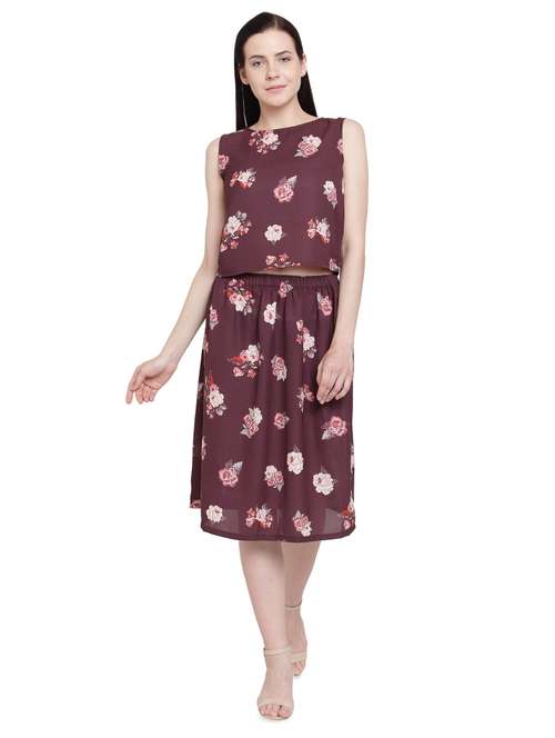 purple floral georgette a-line set
