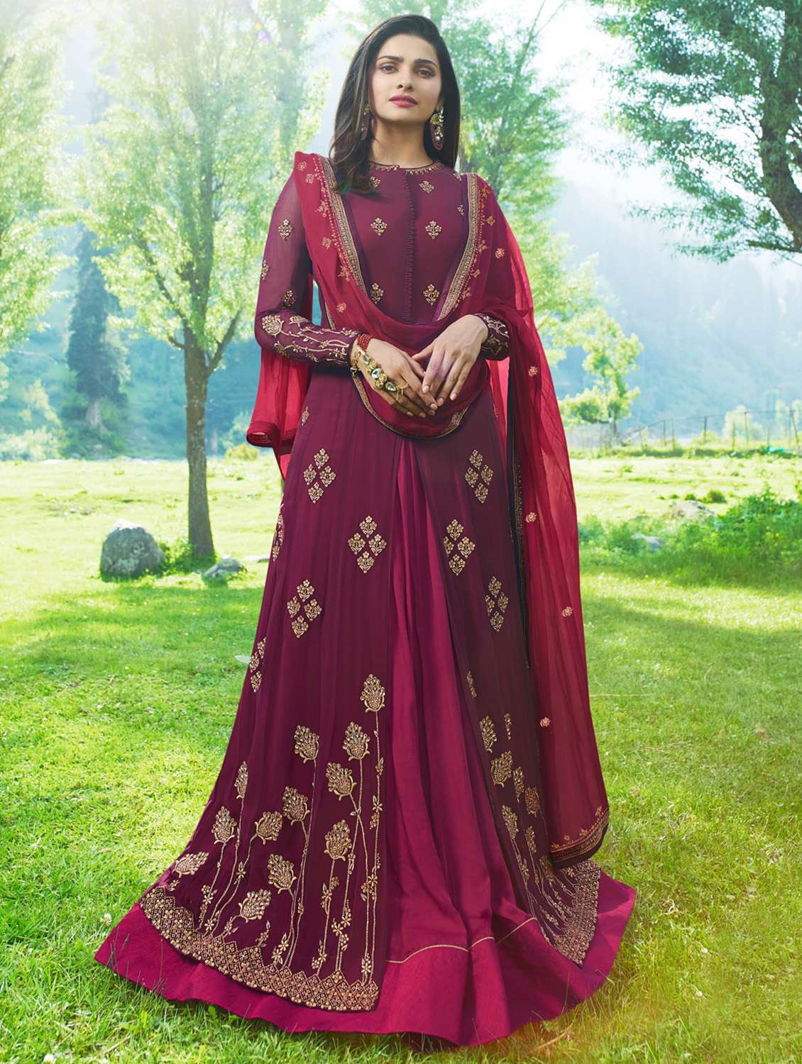 - » zari embroidered layered suit set