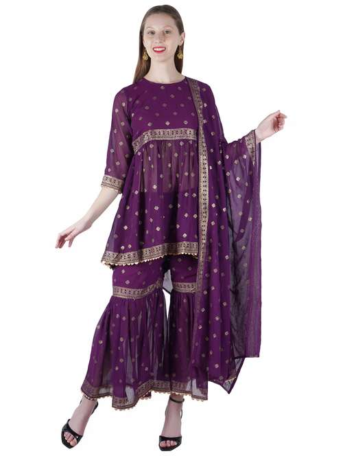 - » purple foil print kurta sharara set