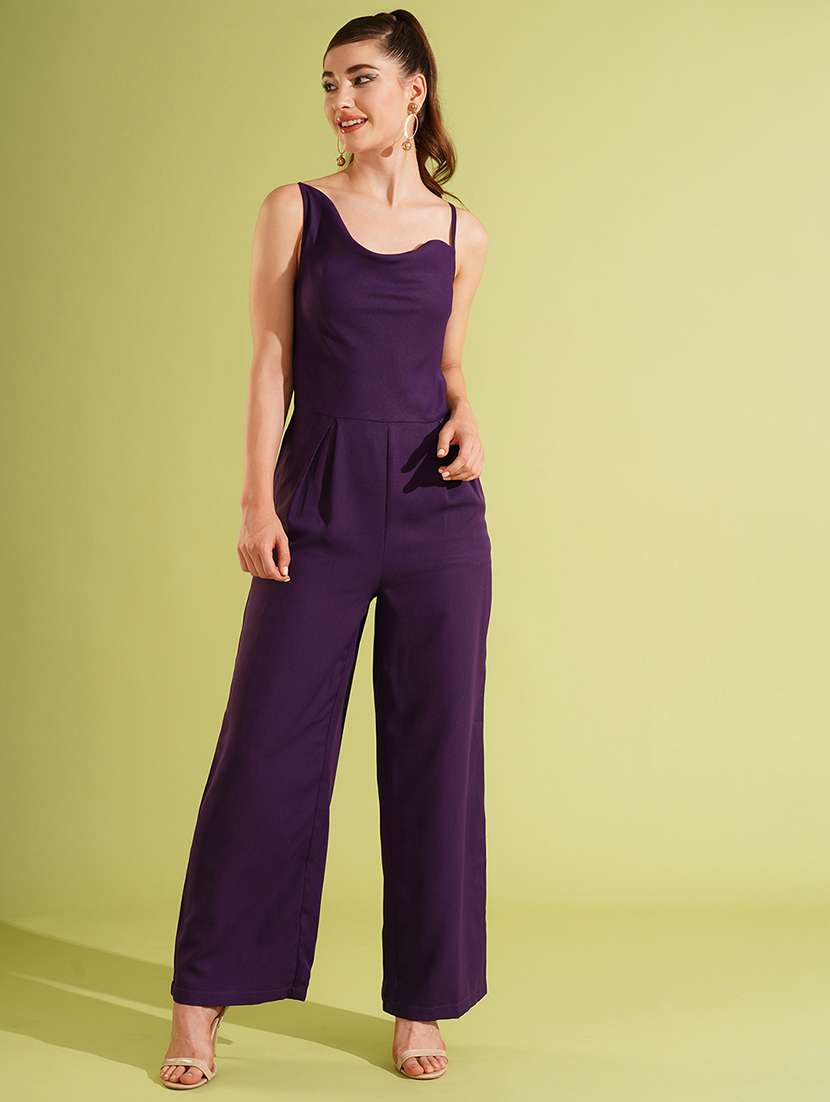 - » women's purple cowl neck strappy shoulder stylised back long wide leg party jumpsuit
