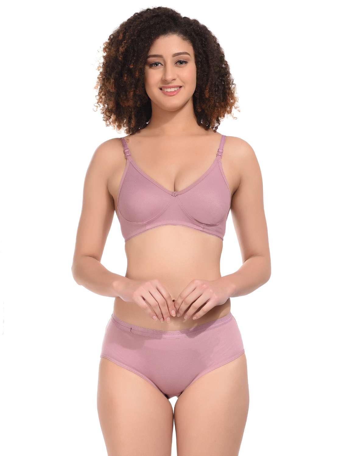 Details & Fabric: This bra is made of Cotton-Hosiery, everyday womens T-Shirt bra.A Moulded T-shirt bra made from cotton hosiery is a type of bra designed for regular wear that provides a smooth, seamless appearance under clothing. Back closure Having 2 row and 3 columns hook and Detachable straps for Adjusting proper fitting and features adjustable straps.The cups of the bra are molded to provide shape and support, and the cotton hosiery material is soft and breathable. This type of bra is ideal for everyday wear and can be worn with a variety of clothing styles.Panty is Made of Cotton-Hoseiry. Full Hipster style, regular Wear.