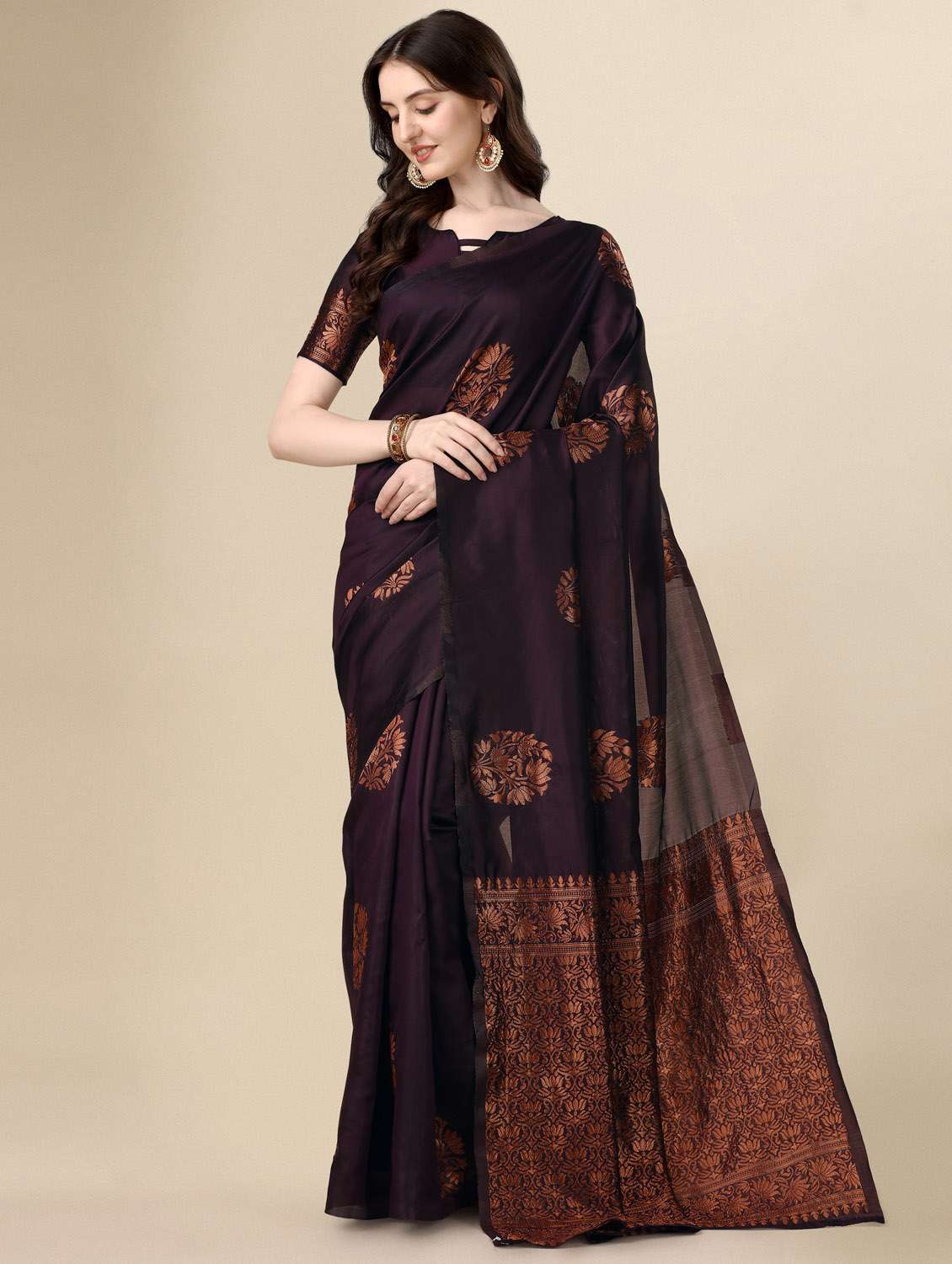- » women's self design coffee brown colored saree with blouse