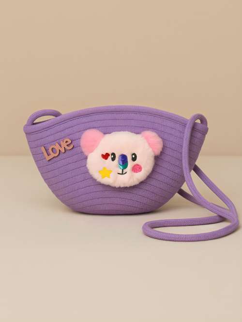 Add a dash of adorable charm to your little one’s outfit with this plush cartoon sling. This bag features a fuzzy character patch in the center and a textured knitted pattern for extra style. Lightweight and gentle to touch, it comes with a long fabric strap that's comfortable for everyday wear. Ideal for playdates, casual outings, or gifting, this kawaii-inspired bag blends fun and function in a compact size perfect for carrying small essentials like candies, toys, or coins.