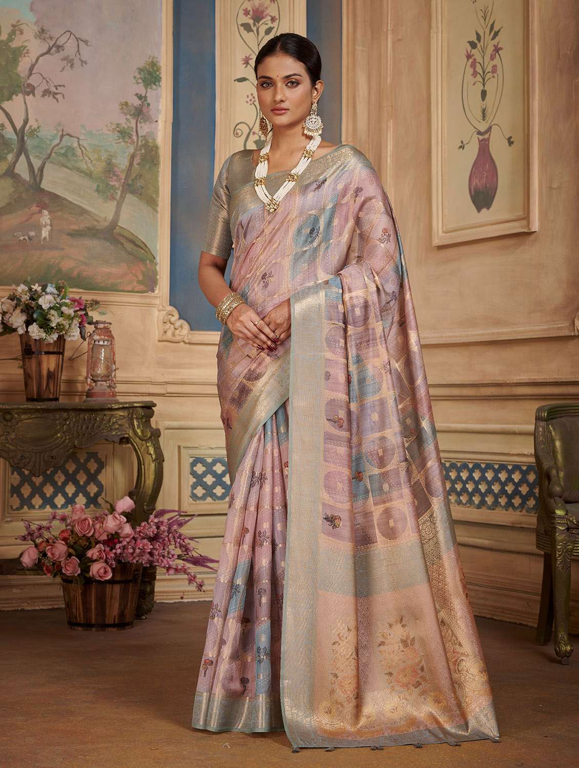 - » women's printed multi colored saree with blouse