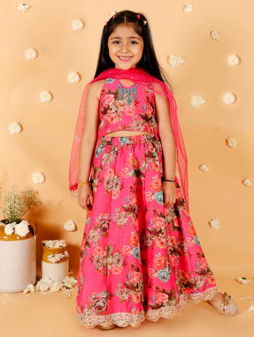 girls floral printed lehenga choli set with dupatta