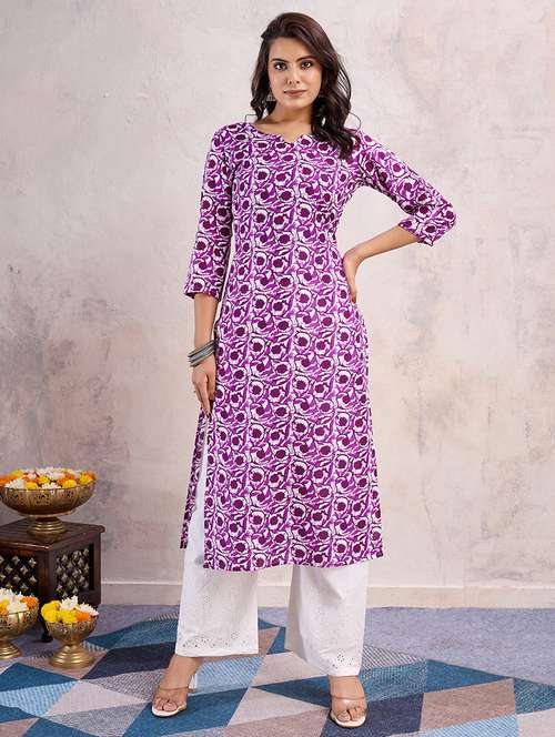 - » women purple three quarter sleeve straight kurta
