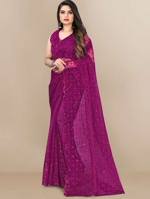 oft Net Embroidered Saree With Sequins Cut Work Border