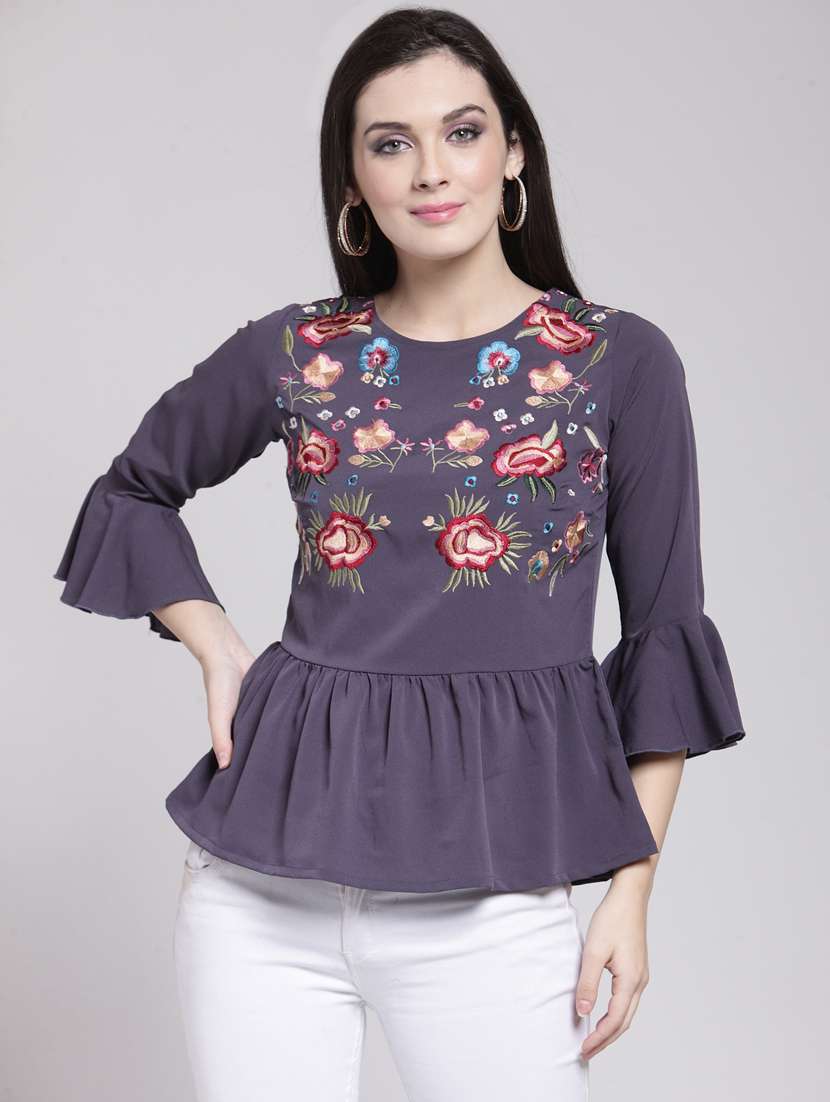 gathered waist embroidered top