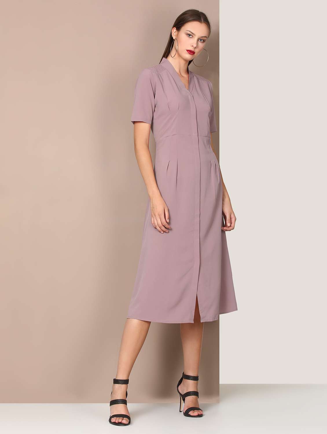 concealed placket solid a-line dress