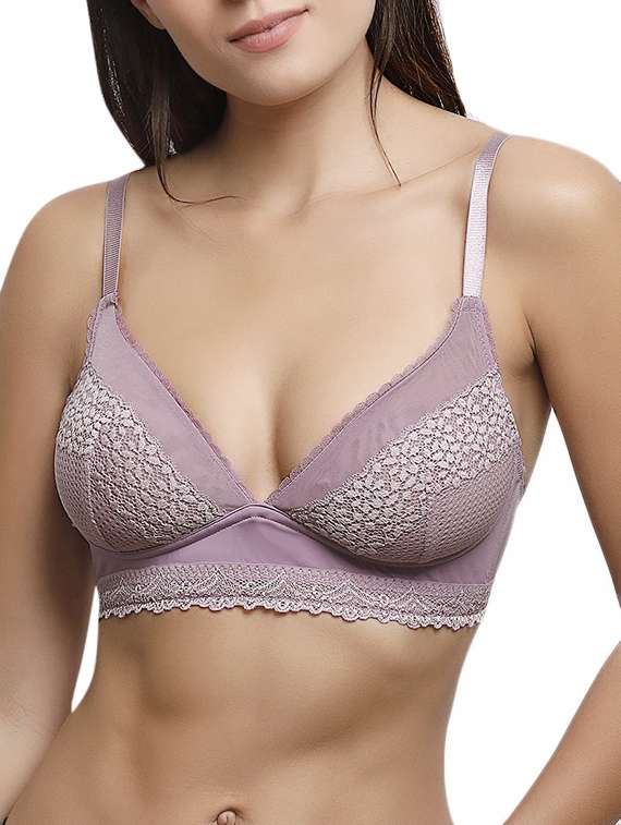 purple solid lacy bra