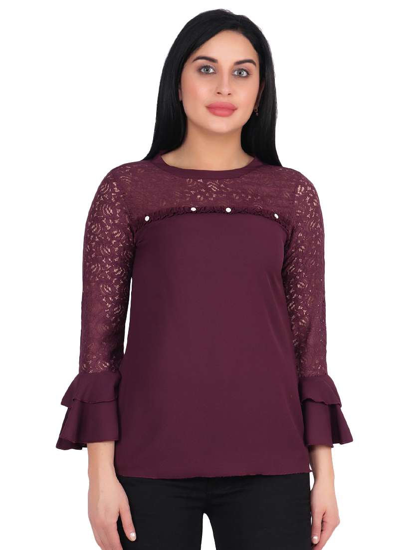 - » lace detail flute sleeved top