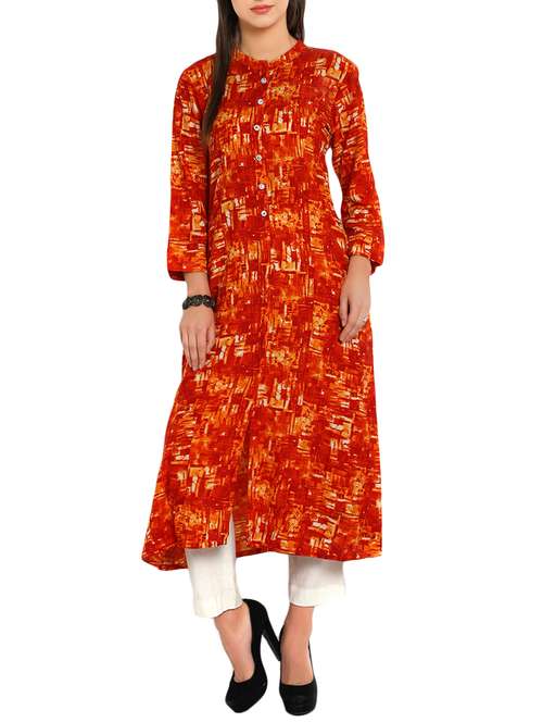- Grab this beautiful kurta made up of viscose fabric featuring mandarin collar neck designs.