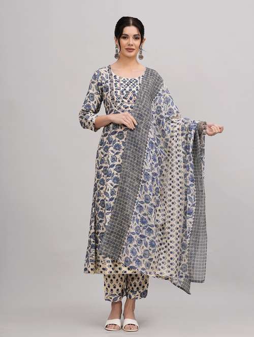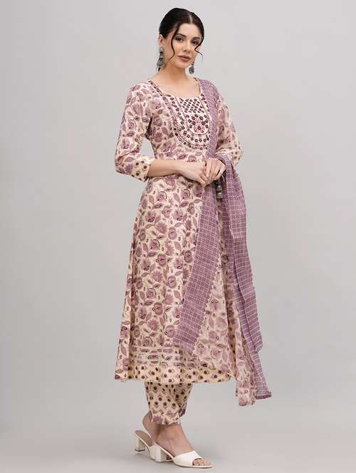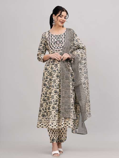 - Find gorgeous sets of ethnic wears in trending designs in beige colors suitable for festive wear of occasions.