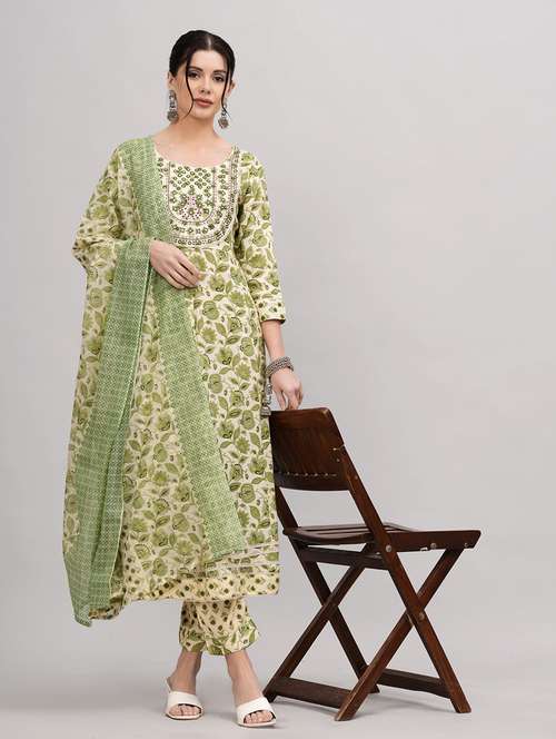 - Browse through the latest range of ethnic sets for women with tailored sleeve designs with mirror work works.