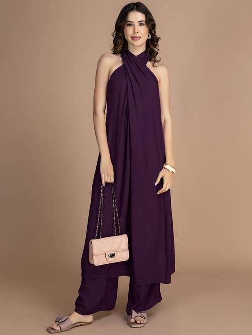 - » women solid halter neck n flared kurta