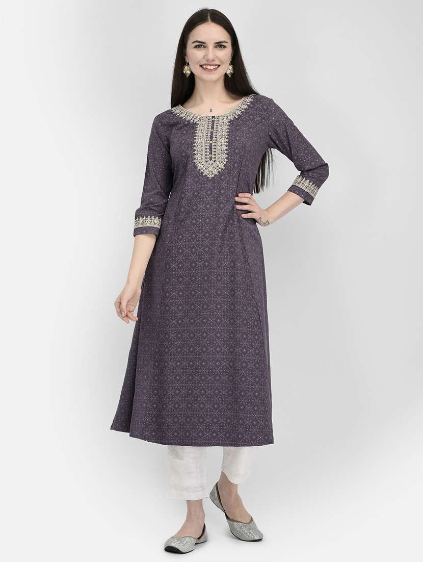 - Grab this beautiful kurta made up of rayon fabric featuring round neck designs.