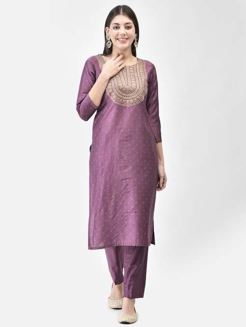 - » women purple round neck straight kurta
