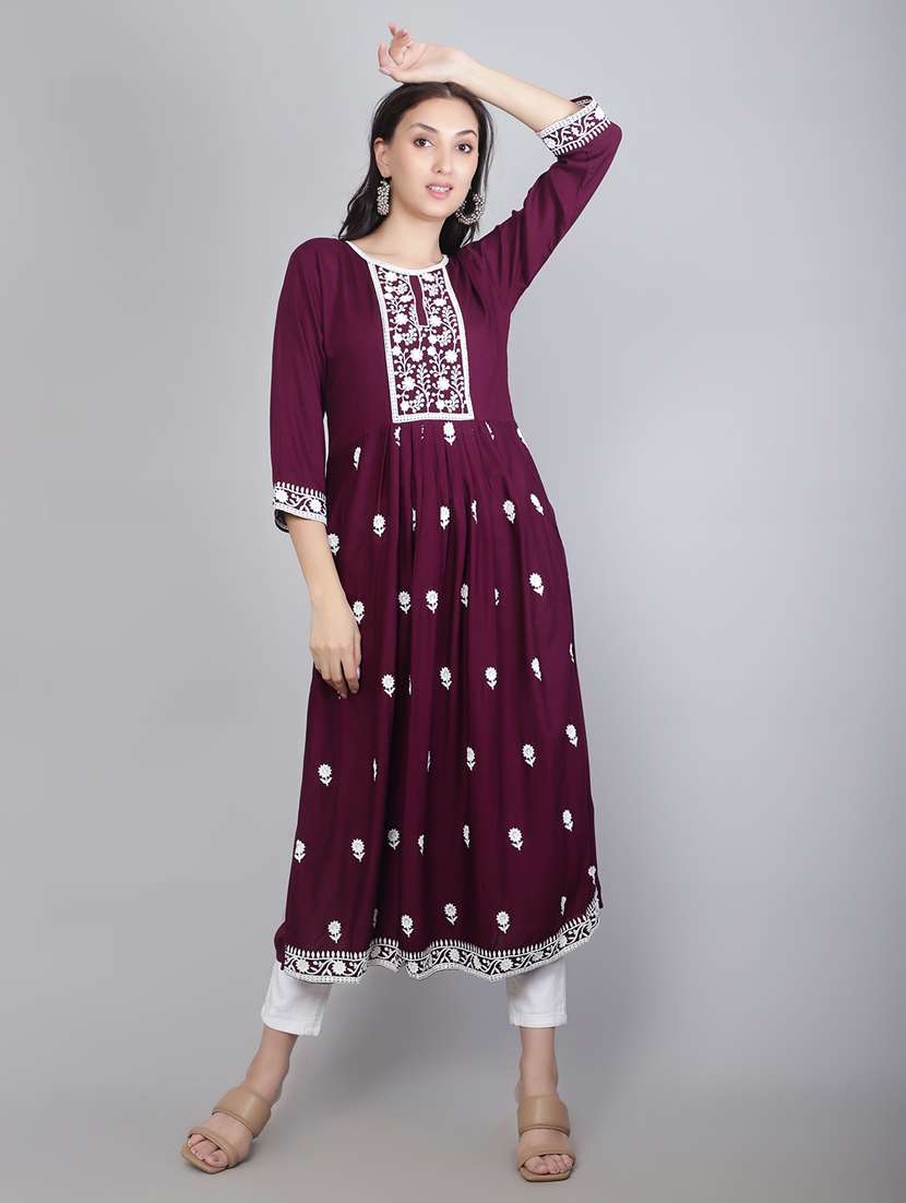 Vairagee Rayon Kurta With Lucknowi Chickenkari Work