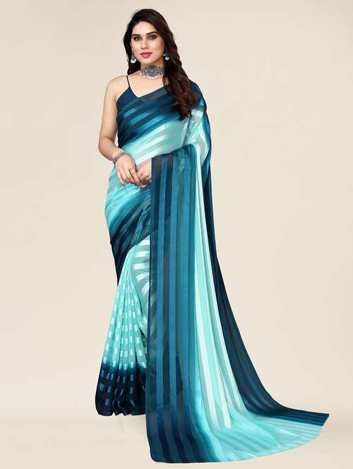 Elevate your ethnic charm with this stunning Bollywood Satin Striped Saree. Crafted from soft and lustrous satin fabric, this saree features elegant striped patterns that add a modern touch to its traditional appeal. Inspired by glamorous Bollywood fashion, it's perfect for festive occasions, parties, weddings, and special events.This saree comes with a matching unstitched blouse piece, allowing you to customize it to your style. The smooth satin drape ensures a graceful fall and all-day comfort, making you the center of attention wherever you go.