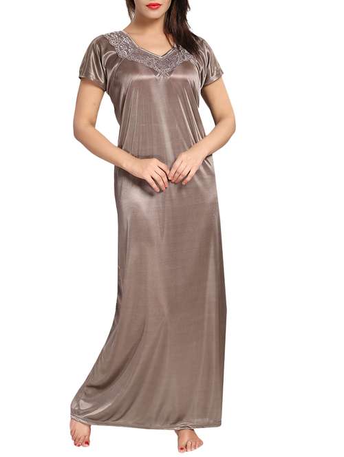 Feel stylish & relax in this Nighty from Be You Fashion. This Nightgown made of Top quality Satin fabric. It has beautiful lace design on v-neck and shoulder till back. Feel relaxed throughout the night by wearing this nighty. Length- Full (approx 55 inches); Size- Free (Fit to Bust 32-44 inches)
