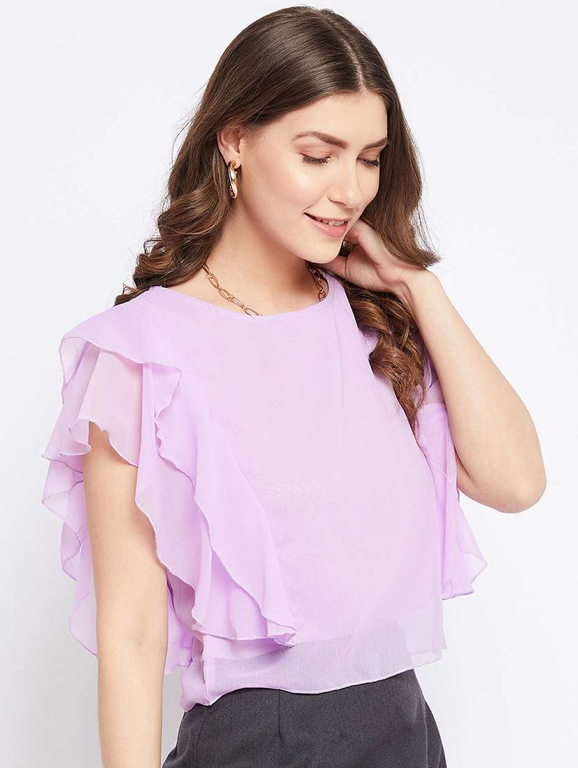 - » women's ruffle round neck top