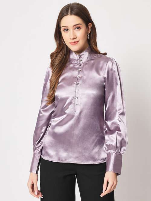 women lavender solid long sleeve top