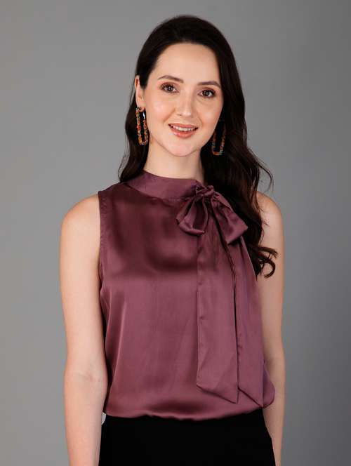 - » women tie knot neck solid top