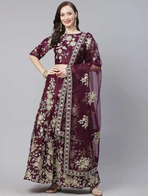 - » embroidered semi-stitched lehenga & blouse with dupatta