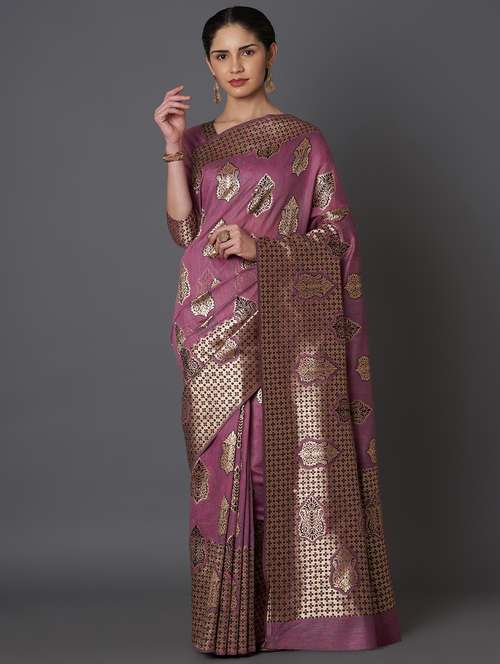 women's self design mauve colored saree - 17515112 - Very Small Image - 1