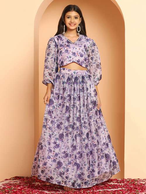 girls lavender v neck lehenga choli