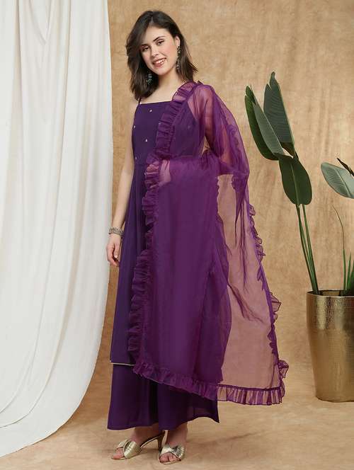 - Find gorgeous sets of ethnic wears in trending designs in purple colors suitable for festive wear of occasions.