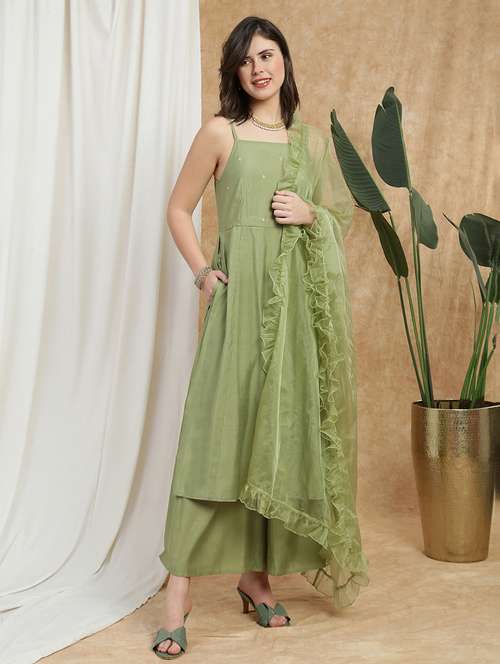 - Browse through the latest range of ethnic sets for women with tailored sleeve designs with sequin works.