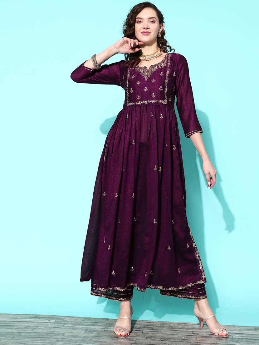 - » purple silk blend kurta palazzo set
