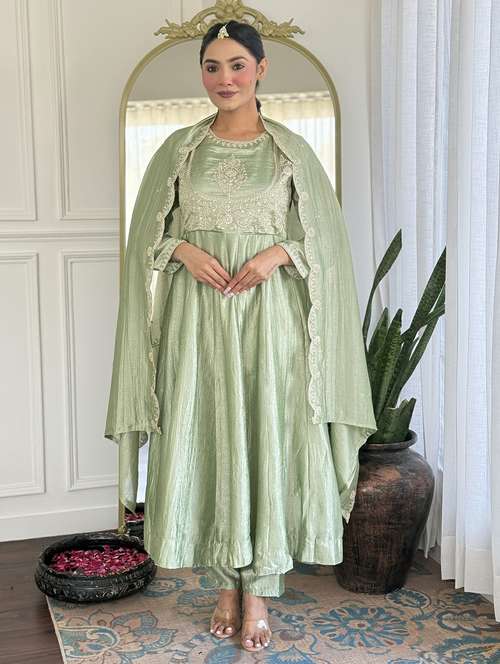 - Browse through the latest range of ethnic sets for women with tailored sleeve designs with embroidered works.