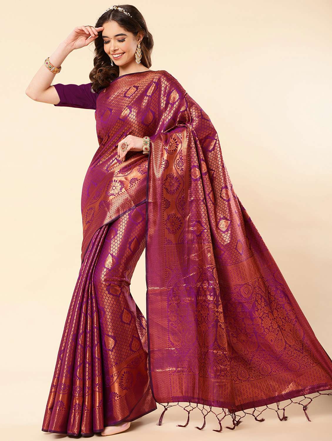 - » purple banarasi saree with blouse