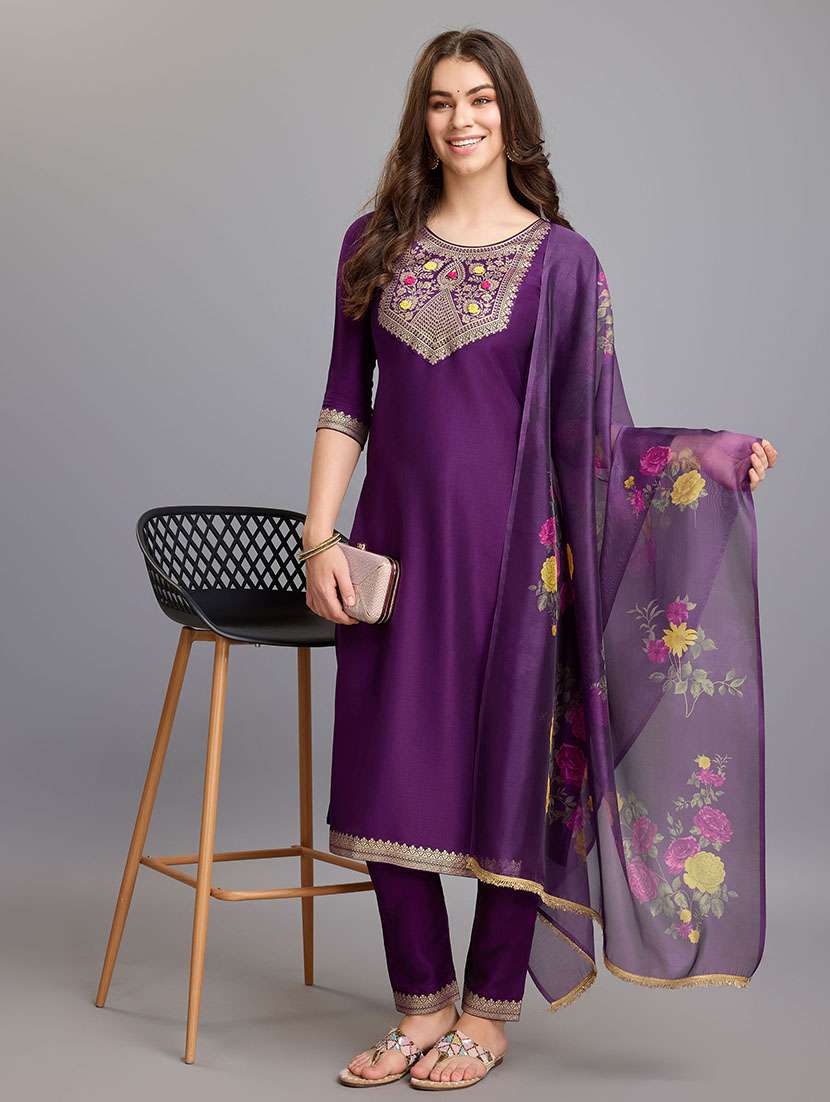 - Find gorgeous sets of ethnic wears in trending designs in purple colors suitable for festive wear of occasions.